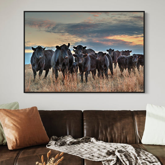 Black Angus Cattle at Sunset - Angus Cows Wall Art Canvas