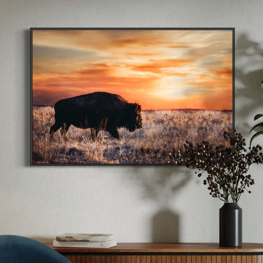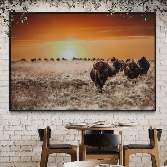 Bison Wall Art Canvas - Colorful Orange Sunset