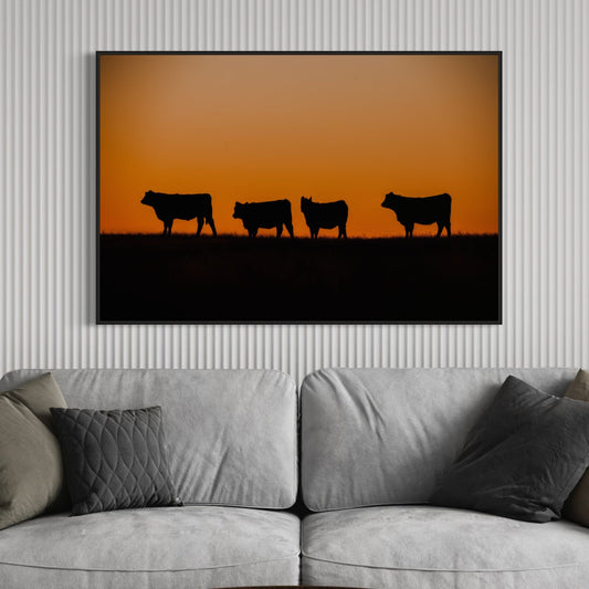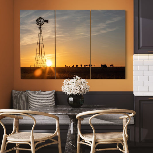 Extra Large Western Wall Art - Angus Sunset Triptych