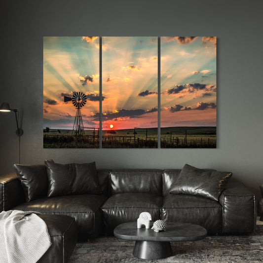 Vintage Windmill Triptych Canvas - 3 Piece Wall Art