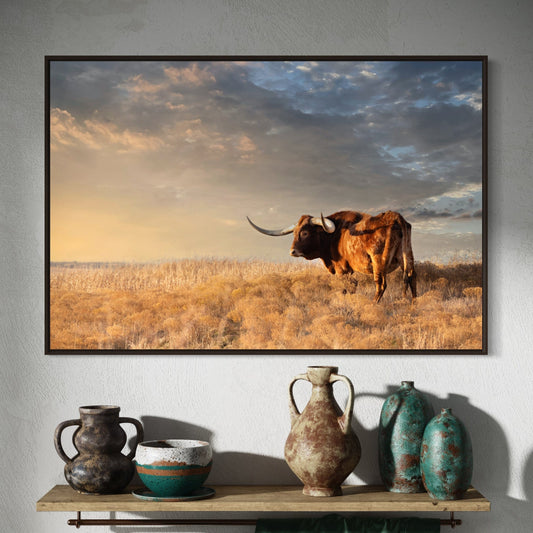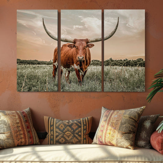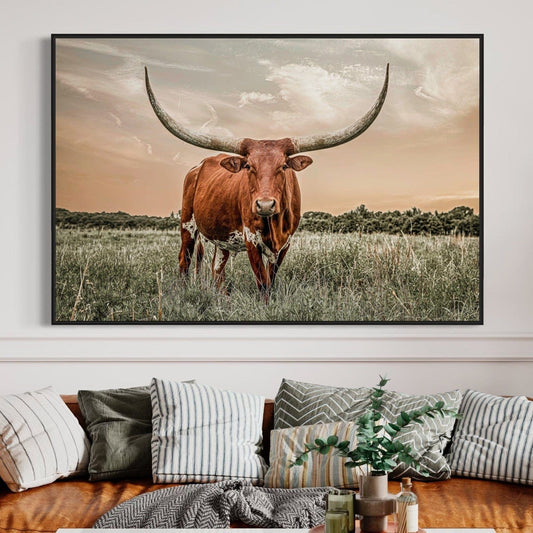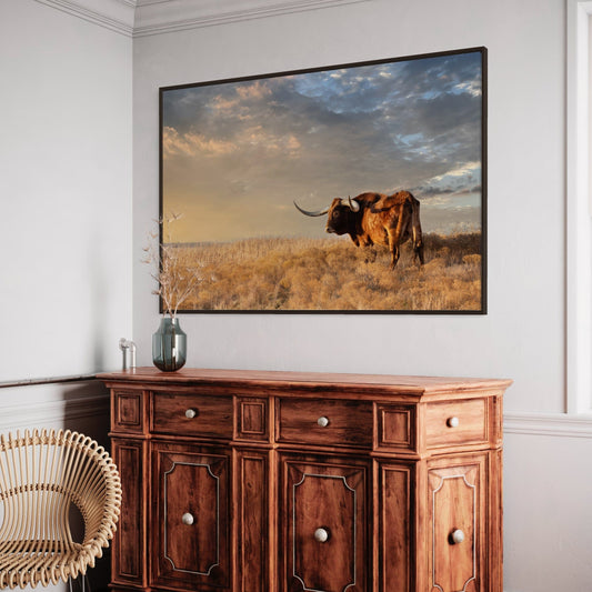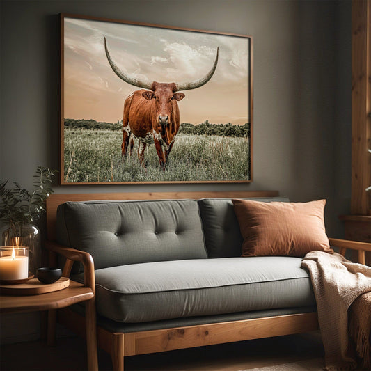 • Texas Longhorn Wall Art: Captivating images of Longhorn cattle set against stunning backdrops, perfect for western-themed decor.