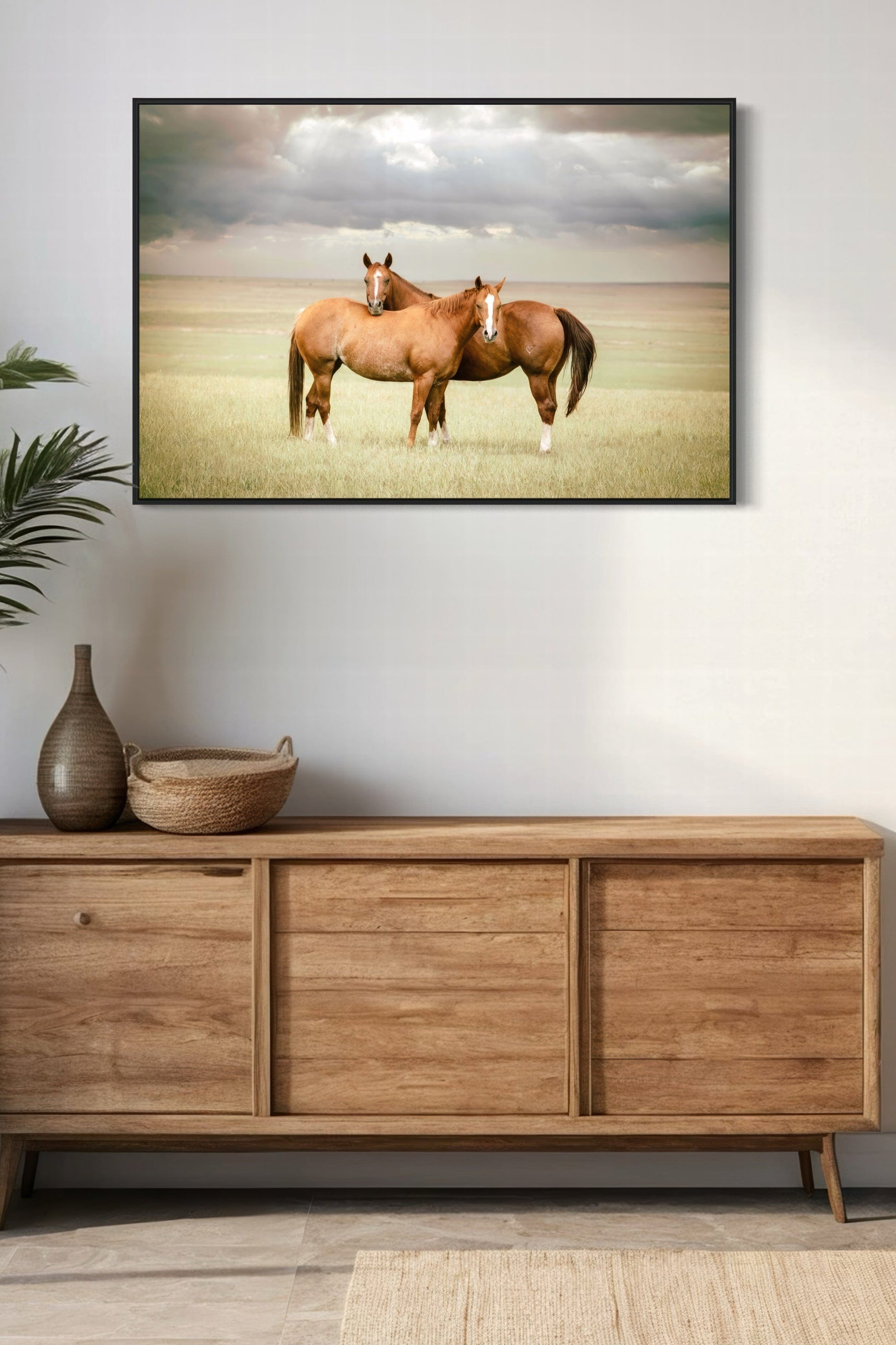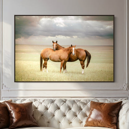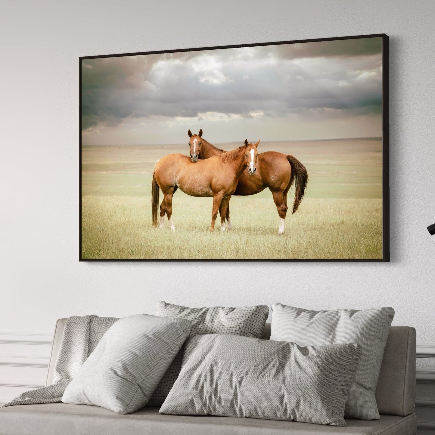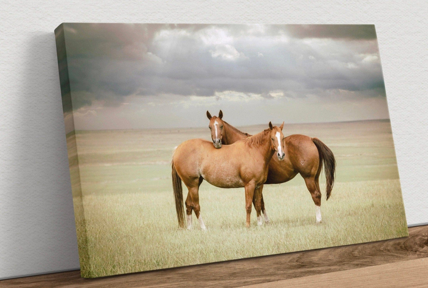 Experience the wide-open plains with this beautiful Cowboy Art Canvas Print featuring two quarter horses on the Oklahoma prairie. Add a touch of western style to your walls with this striking artwork.