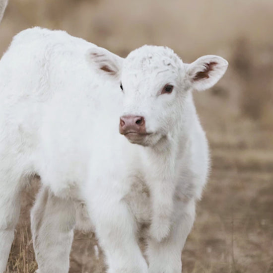 - White Charolais cow and calf artwork suited for western and farmhouse nurseries
