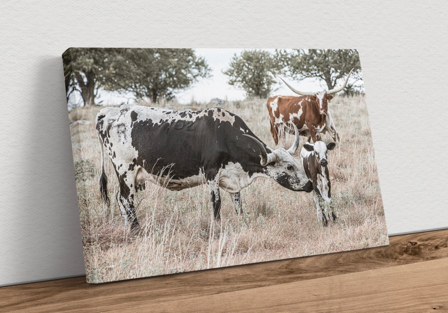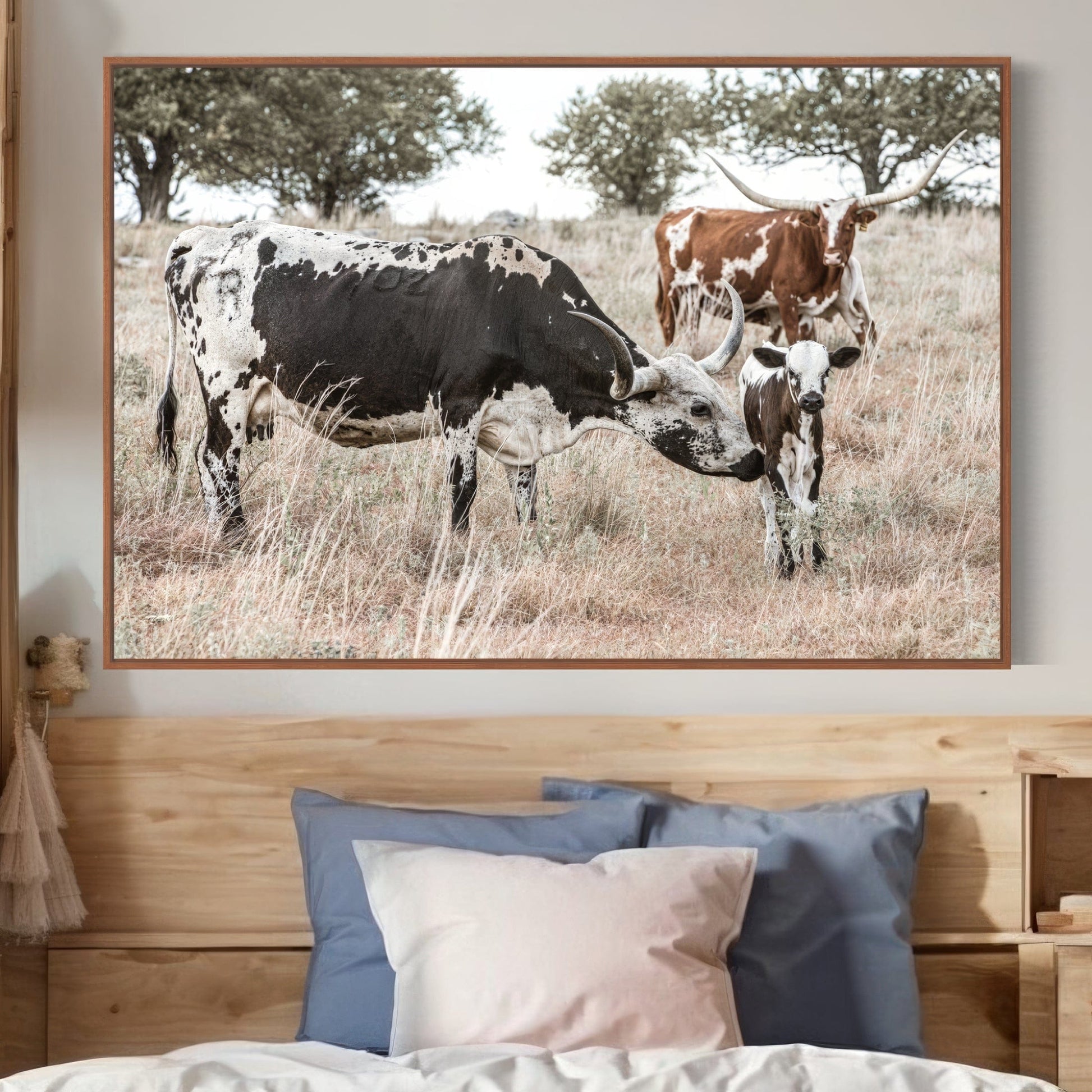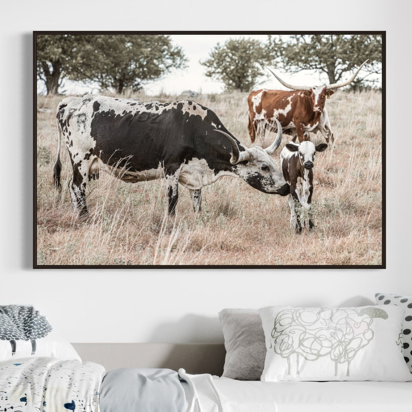 - wall art for cow themed nursery, longhorn nursery wall art, large longhorn wall art, cowgirl style picture, longhorn photo for cowboy, large framed western art, longhorn cattle canvas