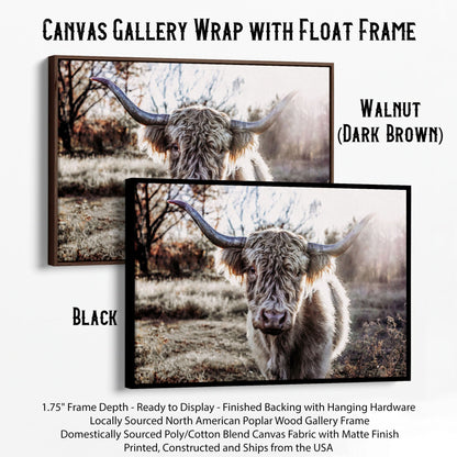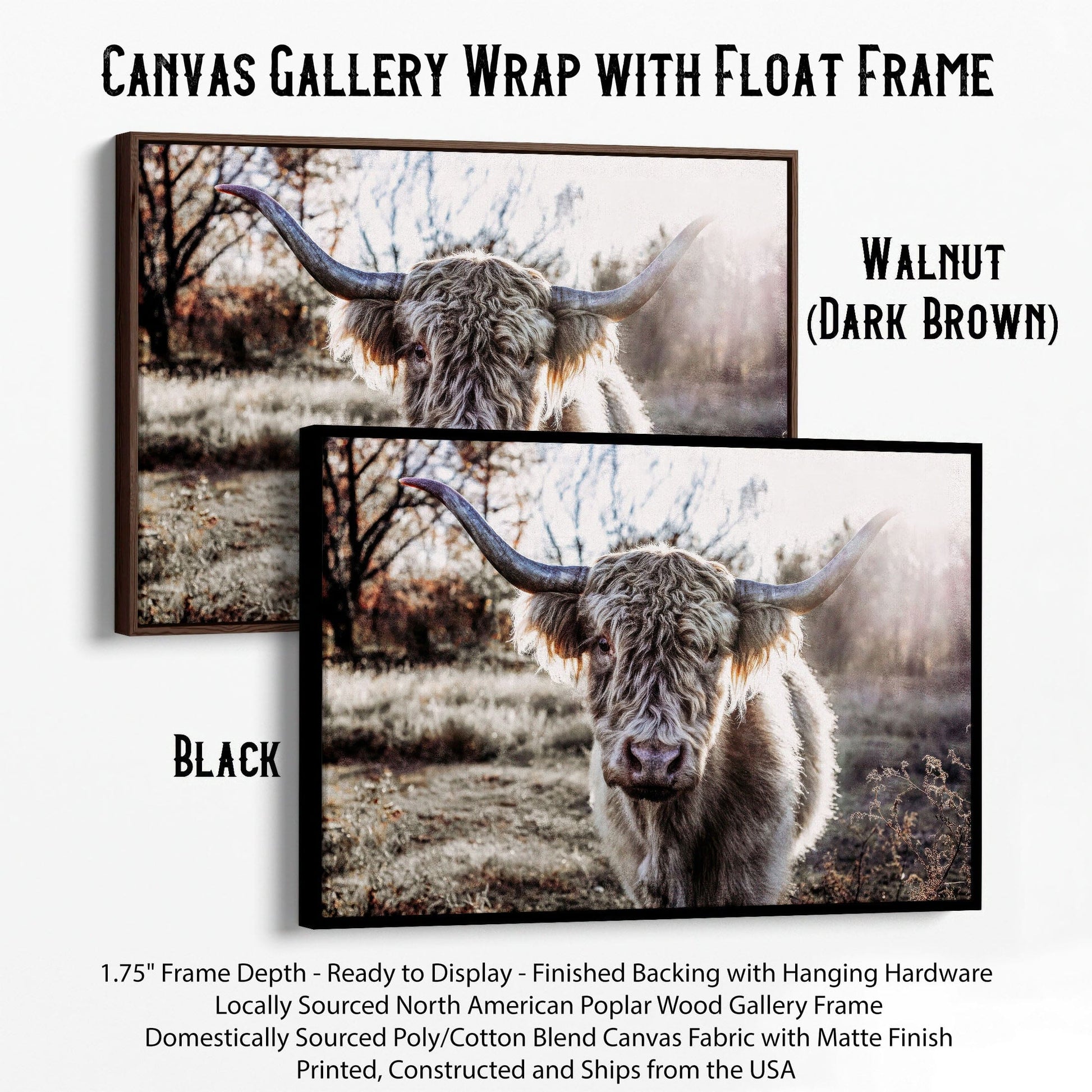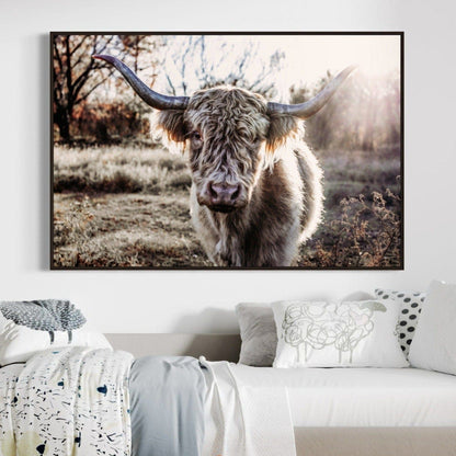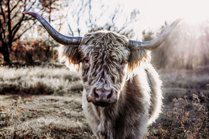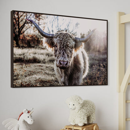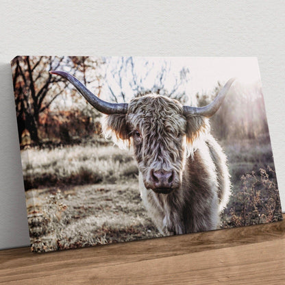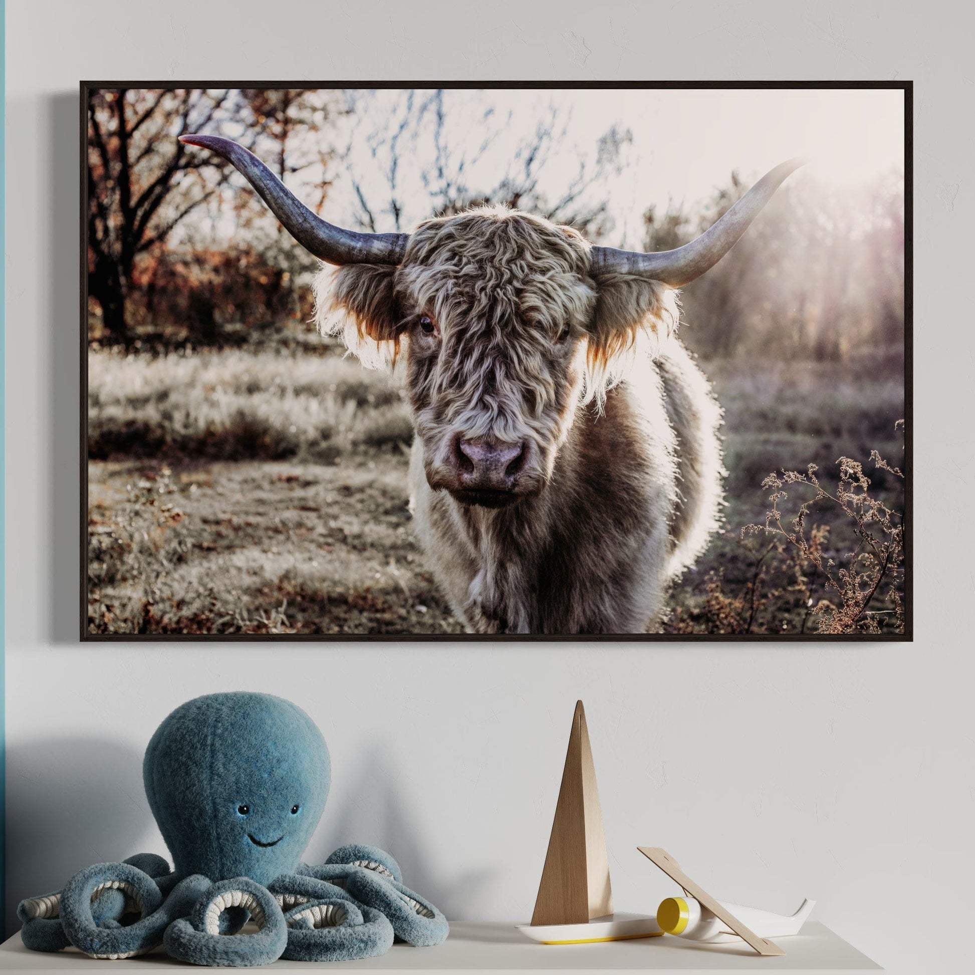 Indulge in the rustic charm of Scotland with our Highland Cow on Canvas print. This portrait of a blonde Highland cow in natural light brings warmth and a touch or rustic to any space.Bring home the Highland Cow on Canvas to add to your farmhouse decor.