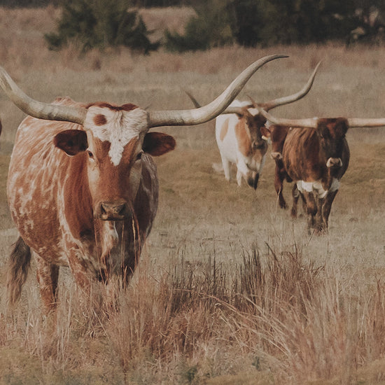 Complete your home decor with this stunning Panorama of Texas Longhorn Cattle, set in a beautiful pasture. With vibrant colors that will pop against any wall, this art print will bring warmth and charm to your space. Pair it with a sleek walnut float frame for a truly eye-catching display.