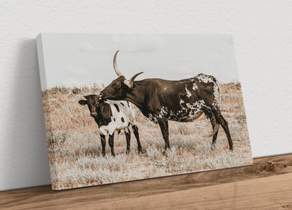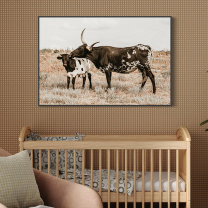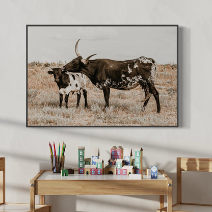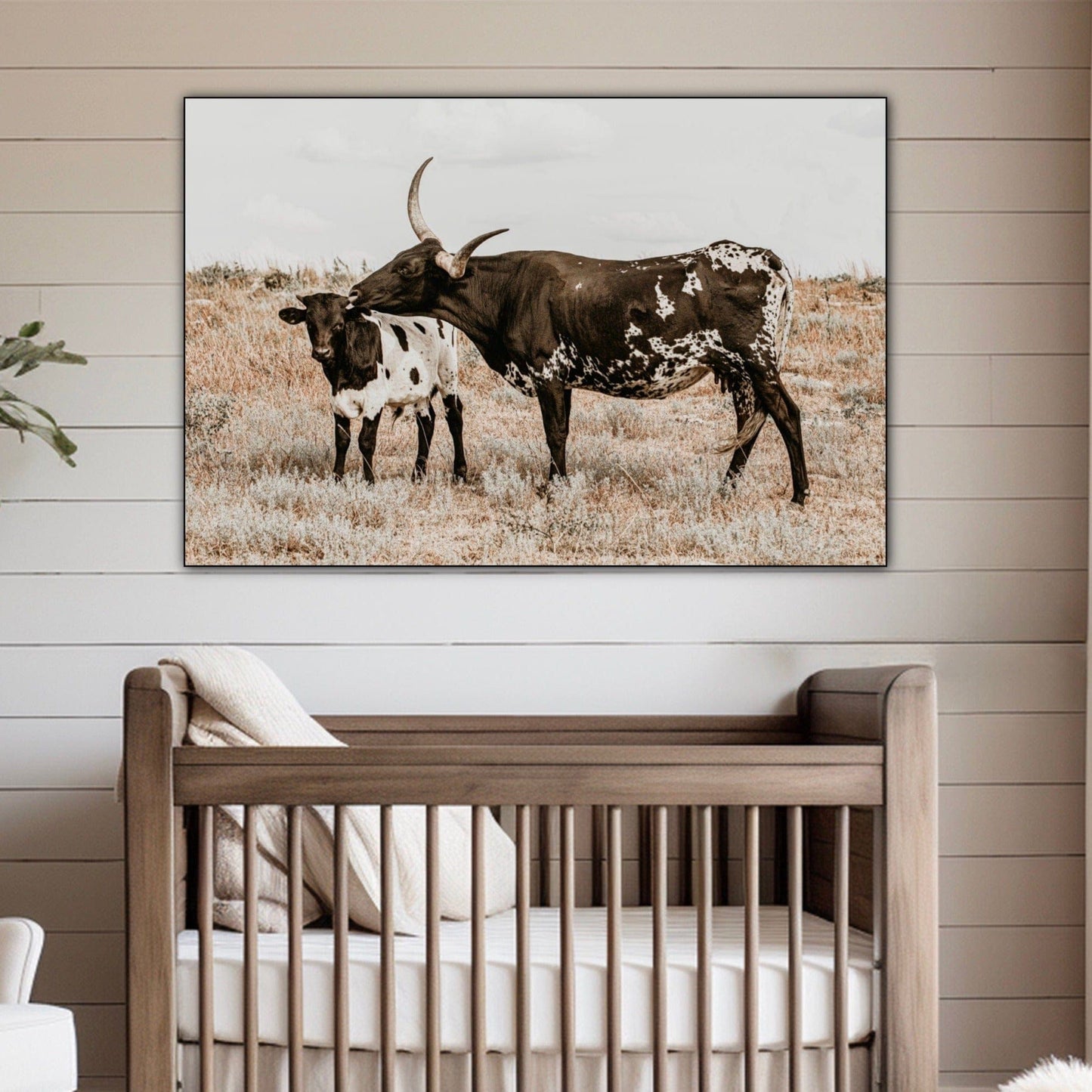Texas Longhorn Cow & Calf Western Nursery Wall Art