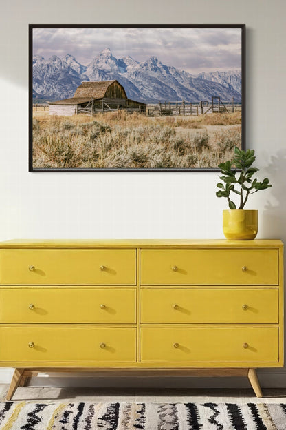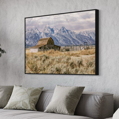 - Moulton Barn canvas print, old barn photography, Moulton Barn artwork, Mormon Row Wyoming Art, rustic landscape print, extra large framed canvas, rustic old barn, Wyoming scenic photography, Grand Tetons Mountains art, Jackson Wyoming landscape
