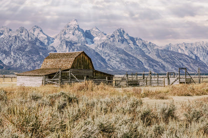 Decorate your walls with the timeless allure of our Moulton Barn Teton Mountains Wall Art. This artwork features the iconic Moulton Barn, standing as a testament to rustic heritage, set against the backdrop of the Grand Teton mountains. This photo or canvas art piece brings a piece of the majestic outdoors into your home.