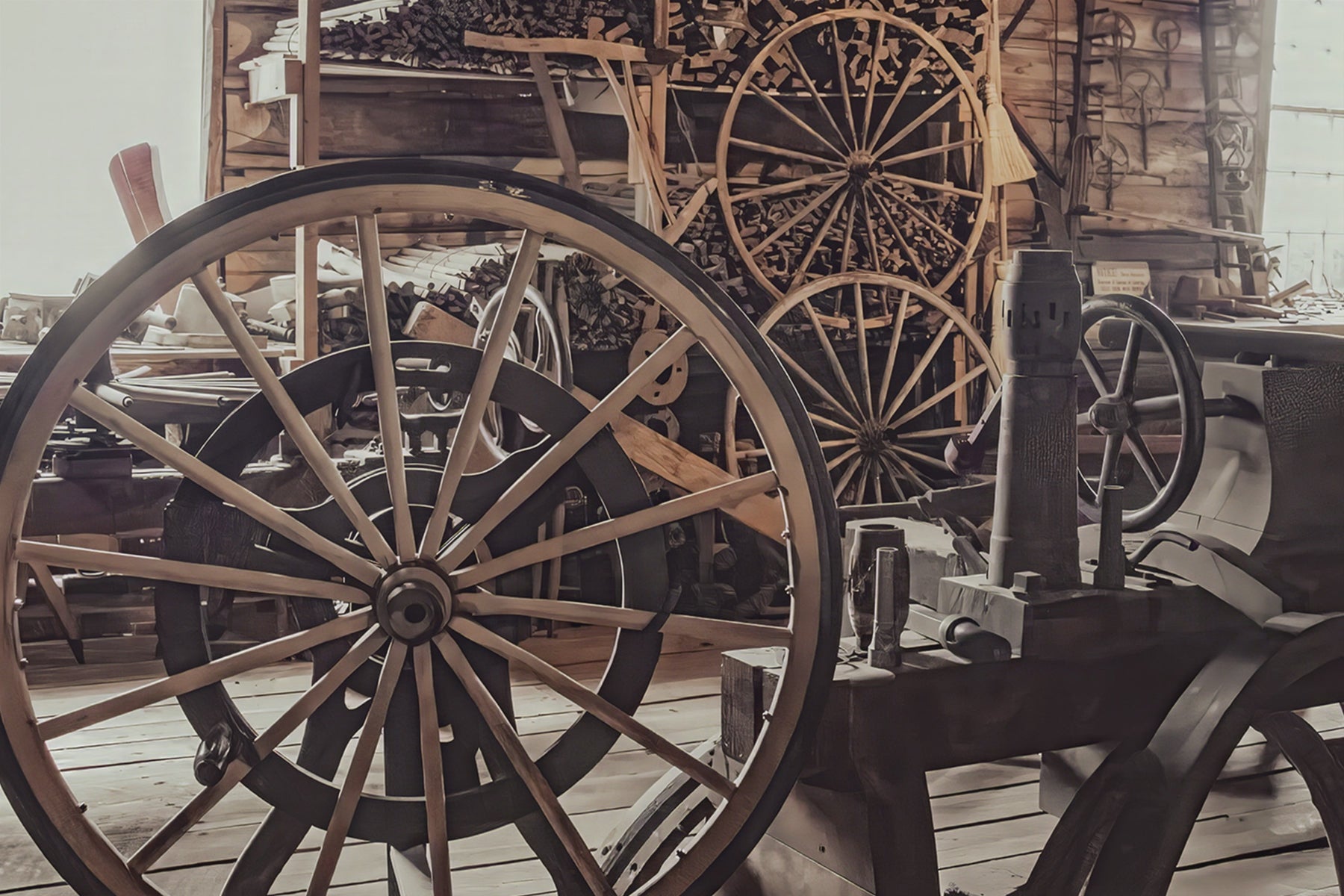 - antique industrial art, rustic industrial artwork, wooden wheels art, wagon wheel photo