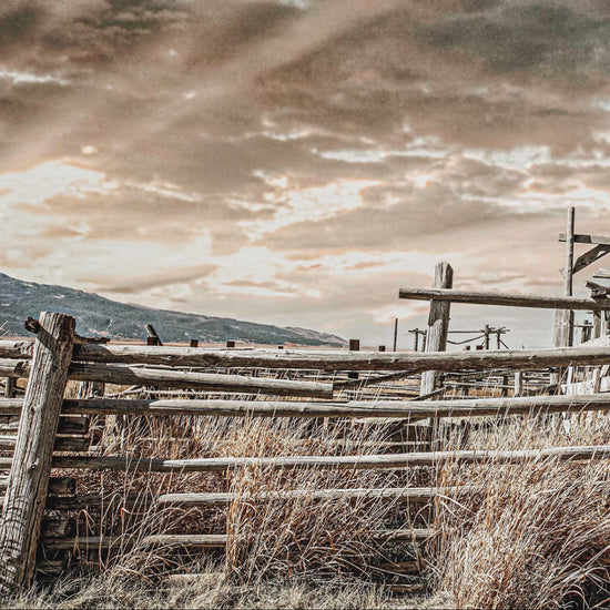 This Rustic Montana Scenic Print captures a scene from the Red Rocks Lake National Wildlife Refuge in Montana. These old wooden cattle chutes and pens have seen many Montana sunsets! This large canvas is a perfect addition to a western or rustic decor home.