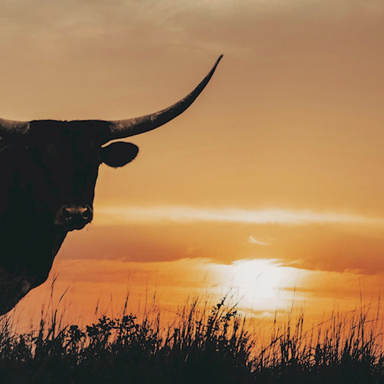 Texas Longhorn Canvas Print - Add a touch of southwestern charm to your home with this beautiful Texas longhorn canvas print featuring a stunning sunset scene. Perfect for your rustic western living room or as a statement piece in your office.