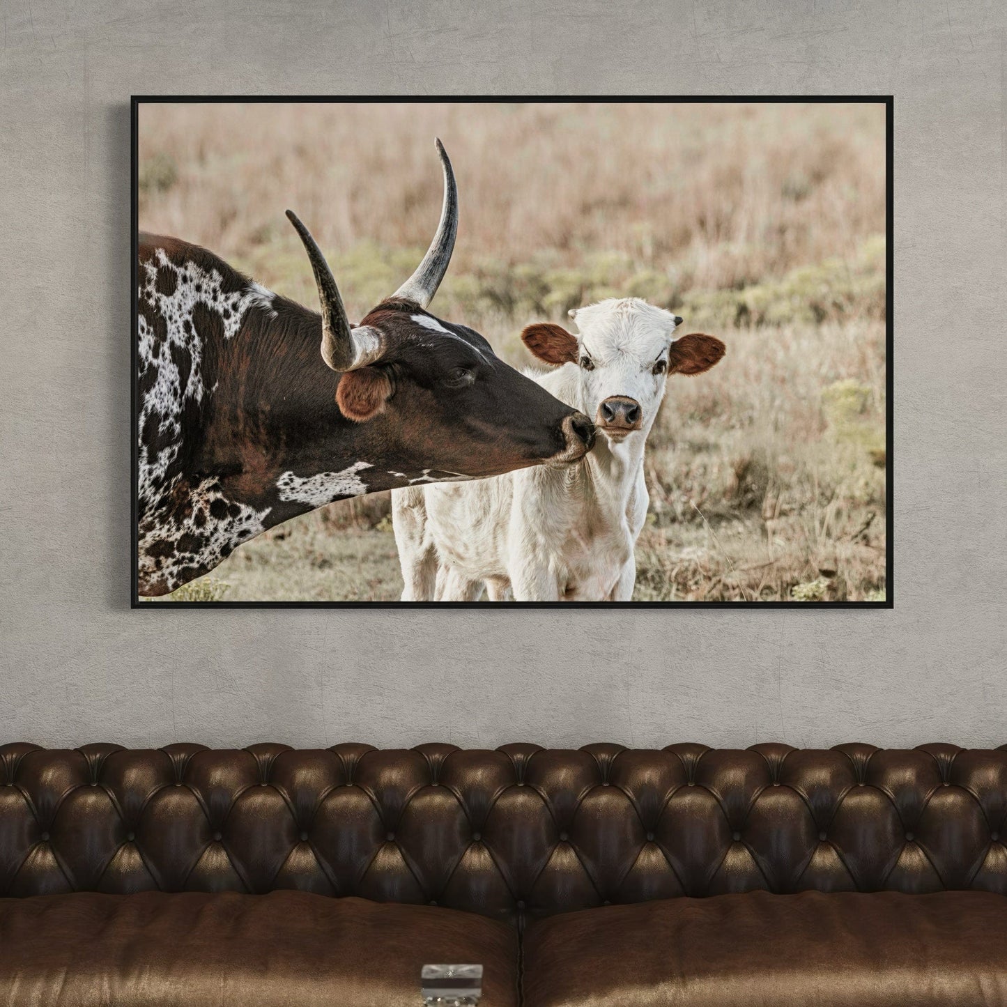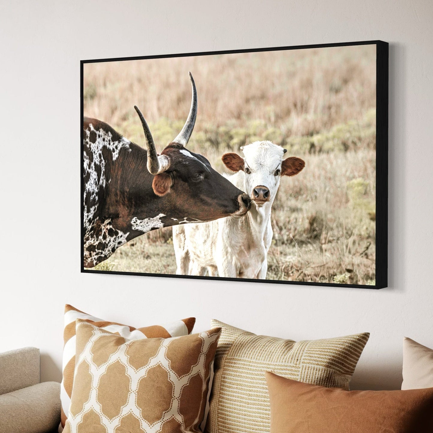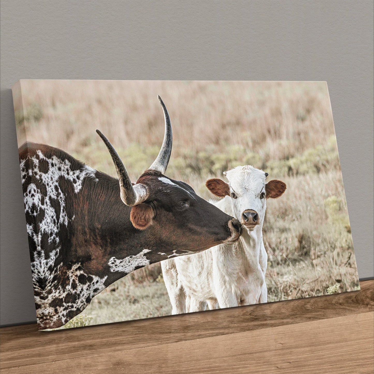 - longhorn nursery wall art, farmhouse nursery art, large longhorn canvas, longhorn cow calf photo, cattle photography, cowboy nursery, cowgirl style art, cow picture