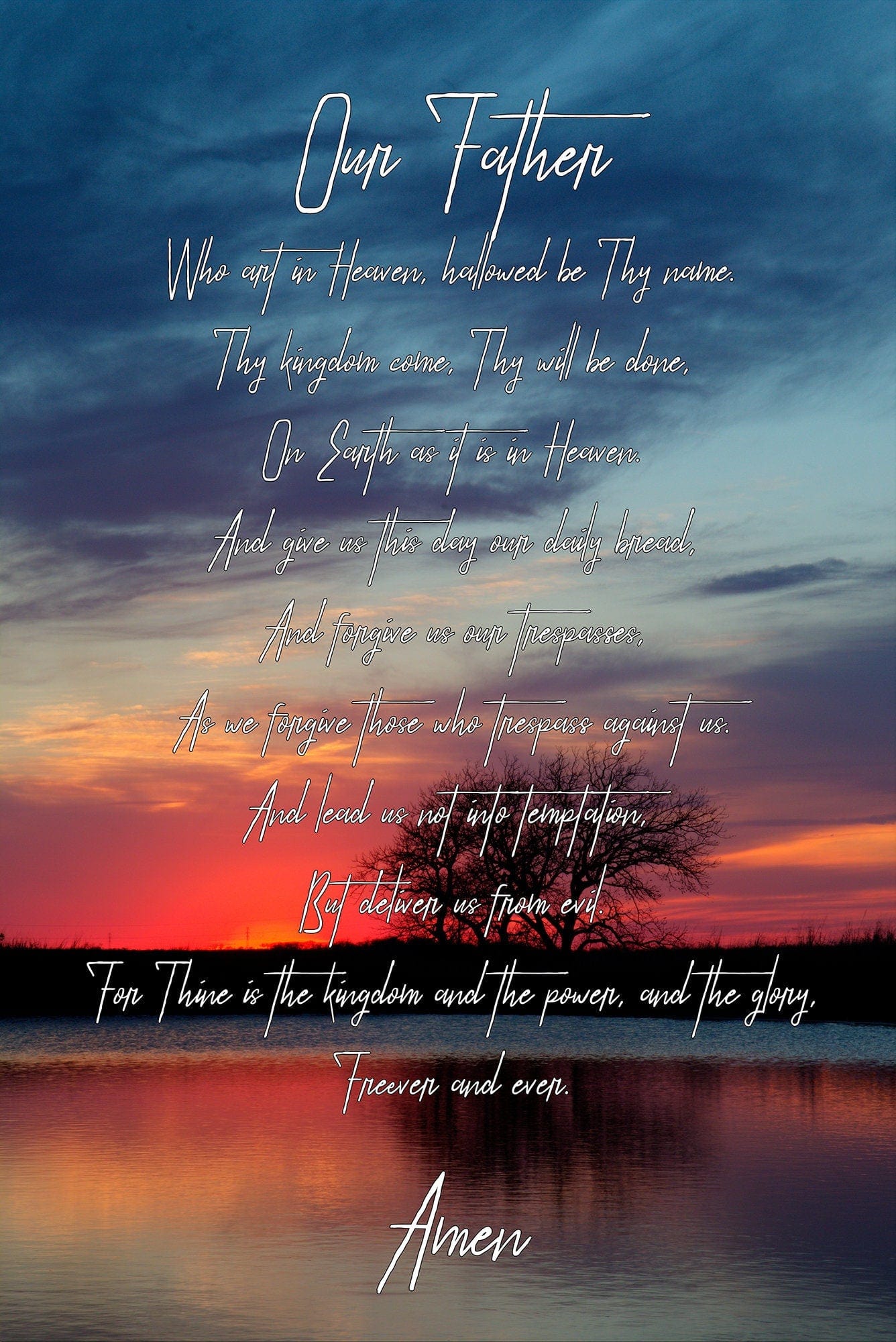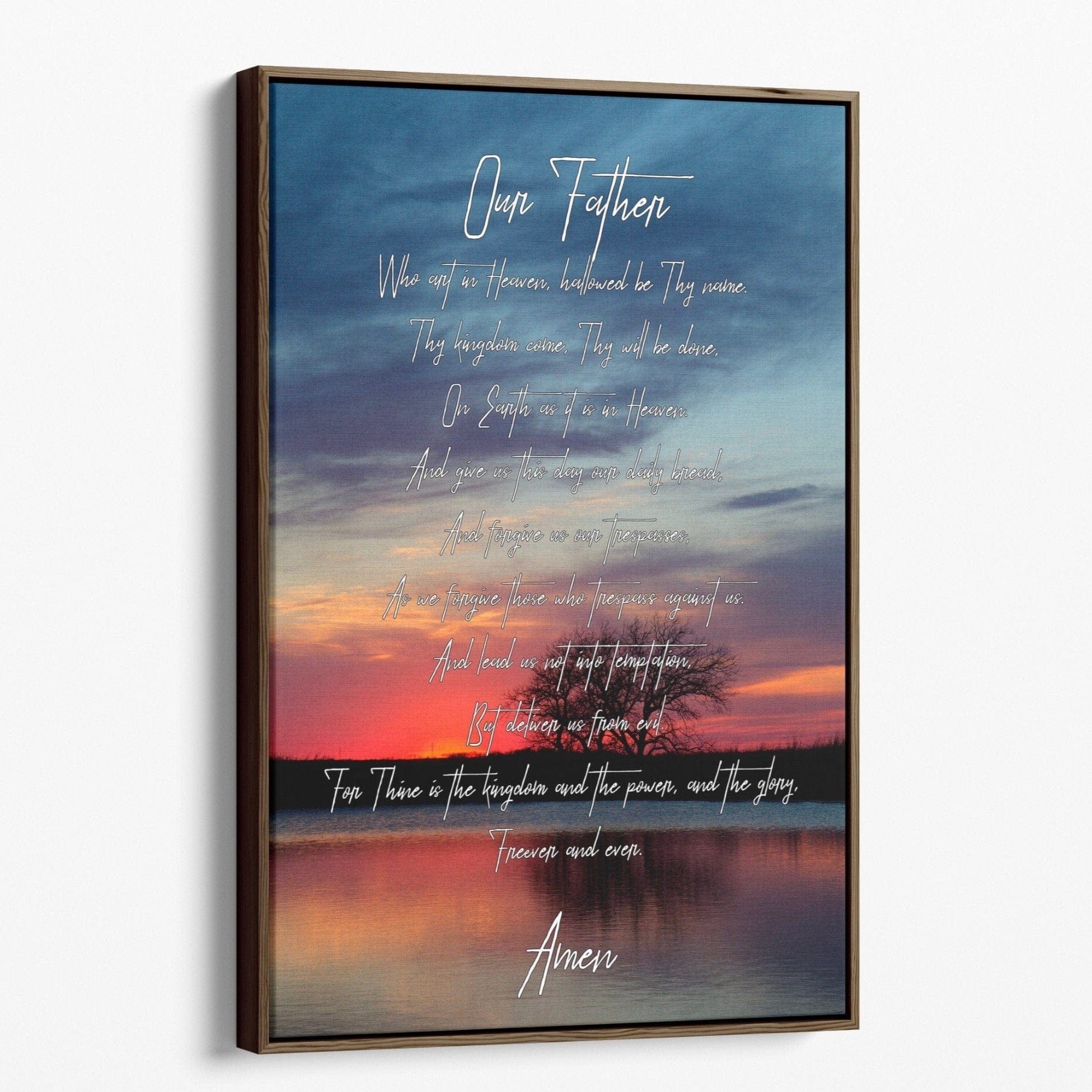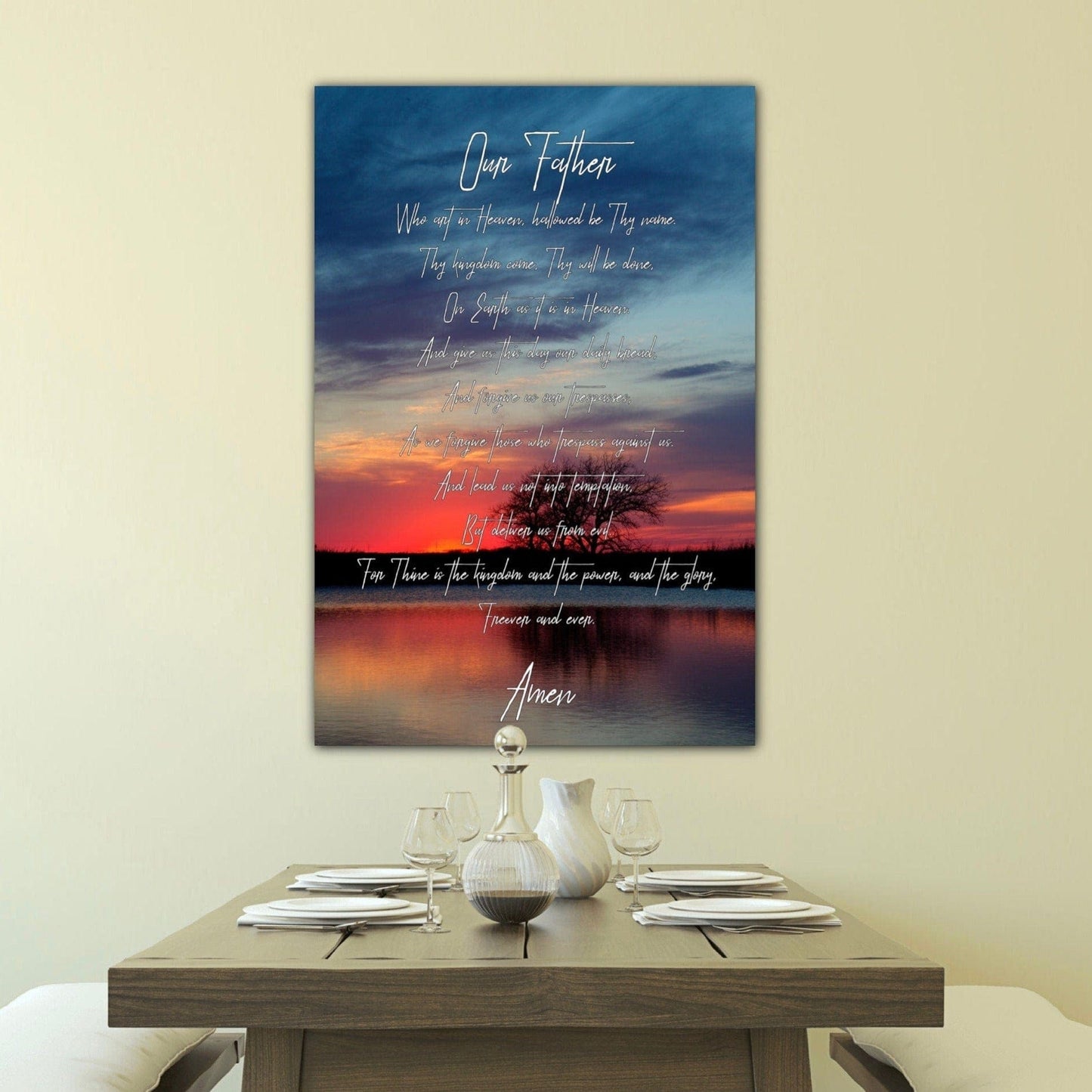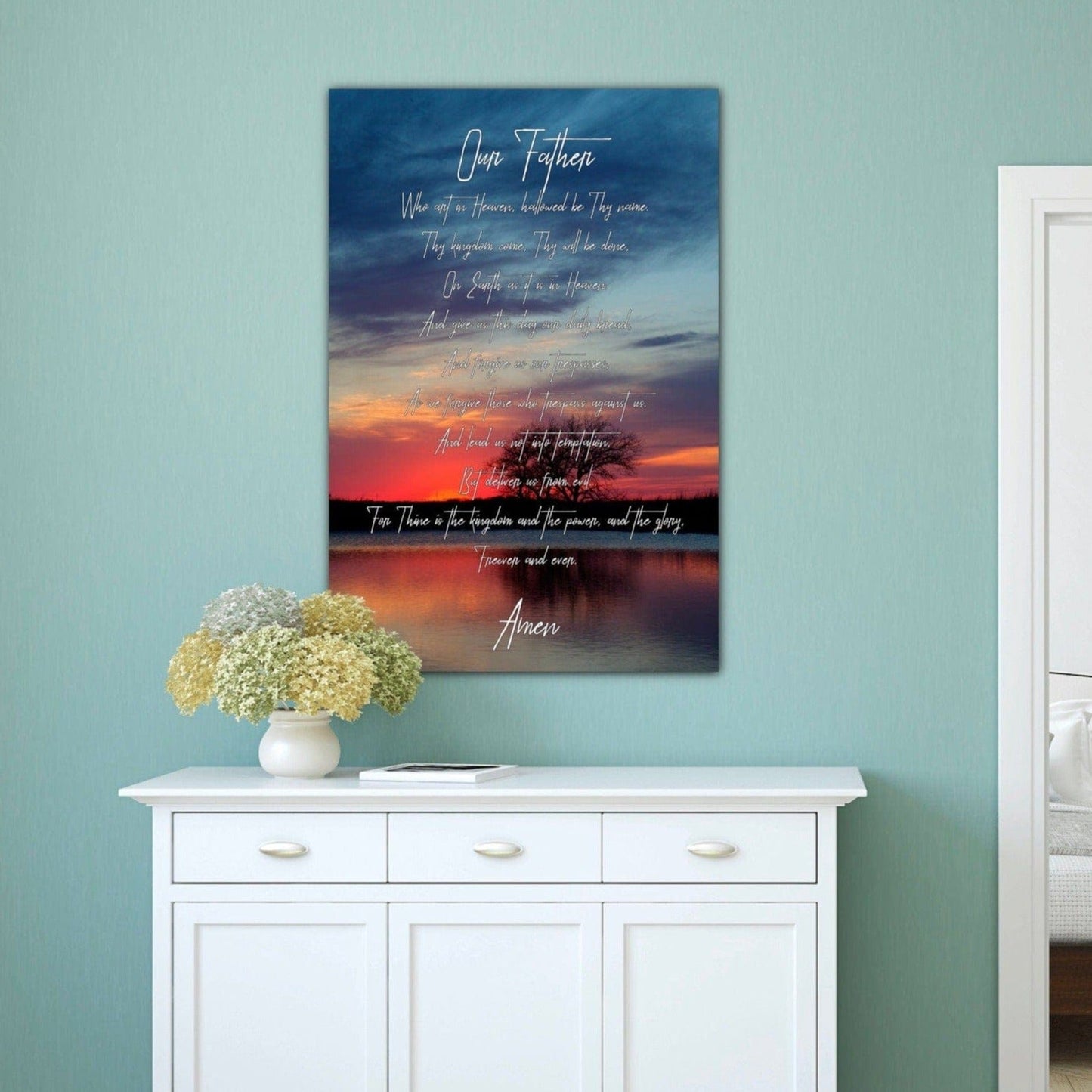 Bring inspiration to your space with the Lord's Prayer Inspirational Wall Art. Featuring a colorful sunset background in red and blue, it combines faith and nature beautifully. Printed with expert care for quality, it’s perfect for any home or office. Custom sizes and options are available—just contact us!